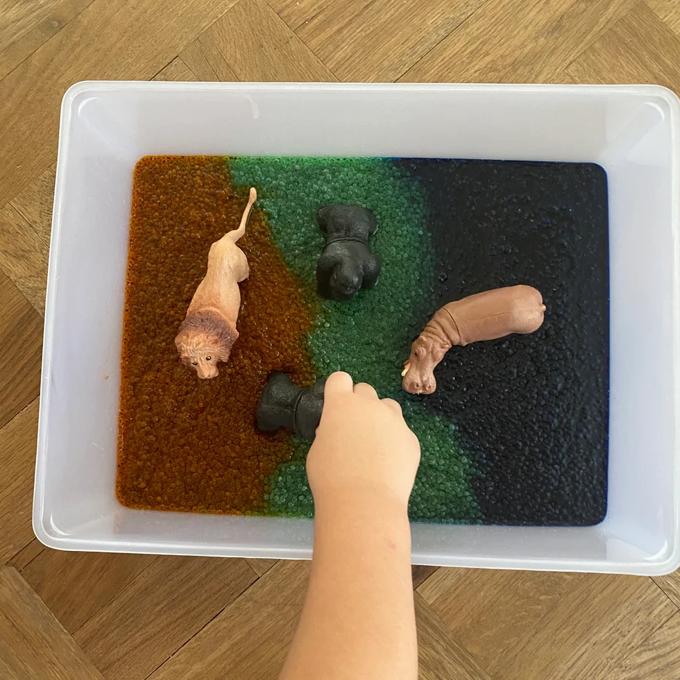 - Freeze ocean animals/toys in the chia beads and let your children free them.